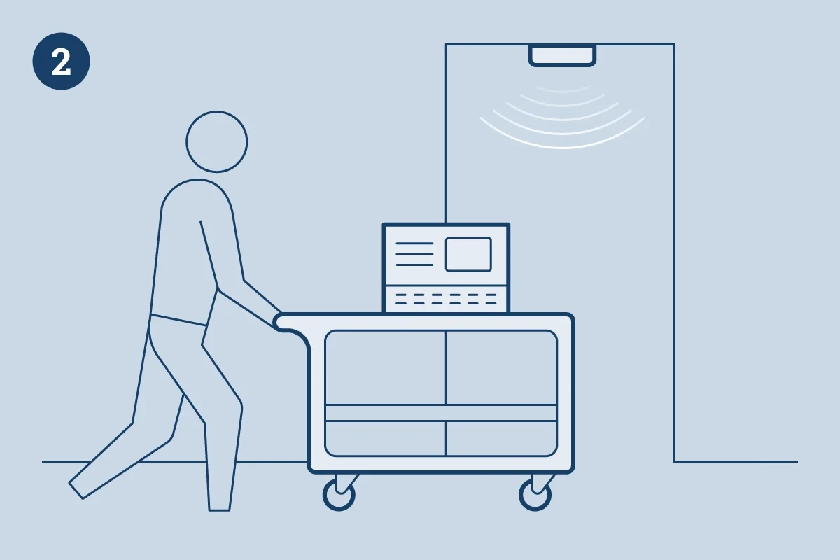 2. อ่าน RFID TAG บนทรัพสินย์ ด้วยการใช้ Impinj RFID Reader ติดไว้ที่ตำแหน่งที่ต้องการติดตาม จากนั้นต่อสายอากาศออกและยึดติดตรงจุดตำแหน่งที่ต้องการ จากนั้นใช้พาหนะเข็นทรัพสินย์ หรือถือทรัพสินย์นั้นผ่านจุดที่ติดตั้งอุปกรณ์เพื่อให้เครื่องอ่านบันทึกข้อมูล